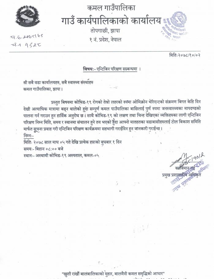 » एन्टिजेन्ट परिक्षण सम्बन्धमा ।