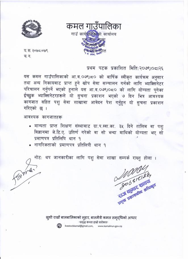 कमल गाउँपालिका कार्यालयको दरबन्दी तेरिज
