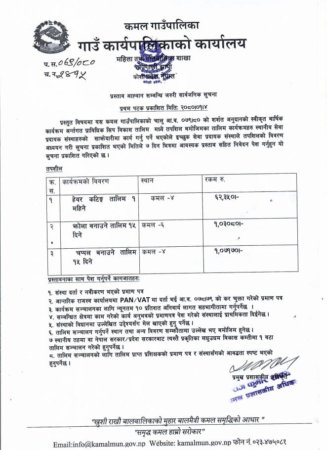 कमल गाउँपालिकाको कार्यसञ्चालन निर्देशिका, २०७८(दोस्रो संशोधन २०८०)