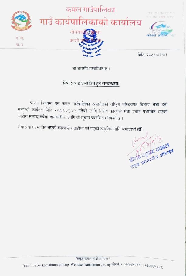 सेवा प्रवाह प्रभावित हुने सम्बन्धमा।