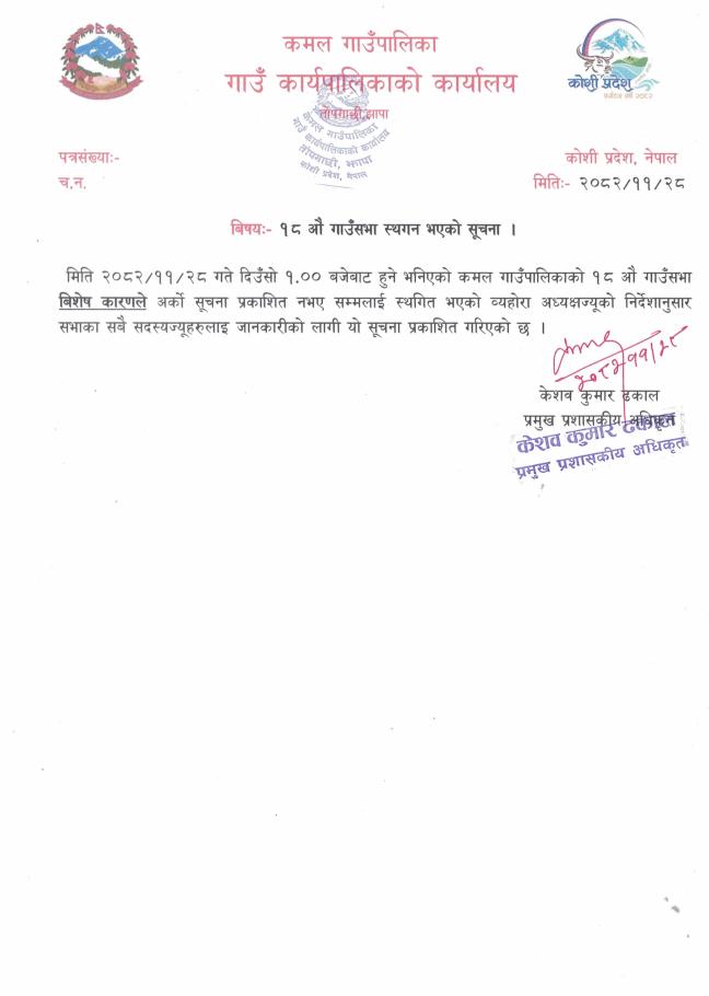 » १८ औ गाउँसभा स्थगन भएको सूचना ।
